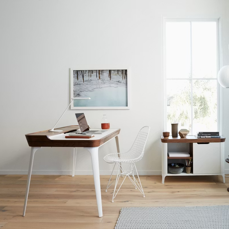 1951 年,Charles 和 Ray Eames 著手挑戰製作一款價格合理、品質優良、既輕巧又堅固的椅子,解答就是 Eames Wire Chair。這款鐵線椅具備雕塑般的造型、舒適度與實用性,一推出便立即受到歡迎,今日的版本仍忠於原始設計、材料與細節呈現。