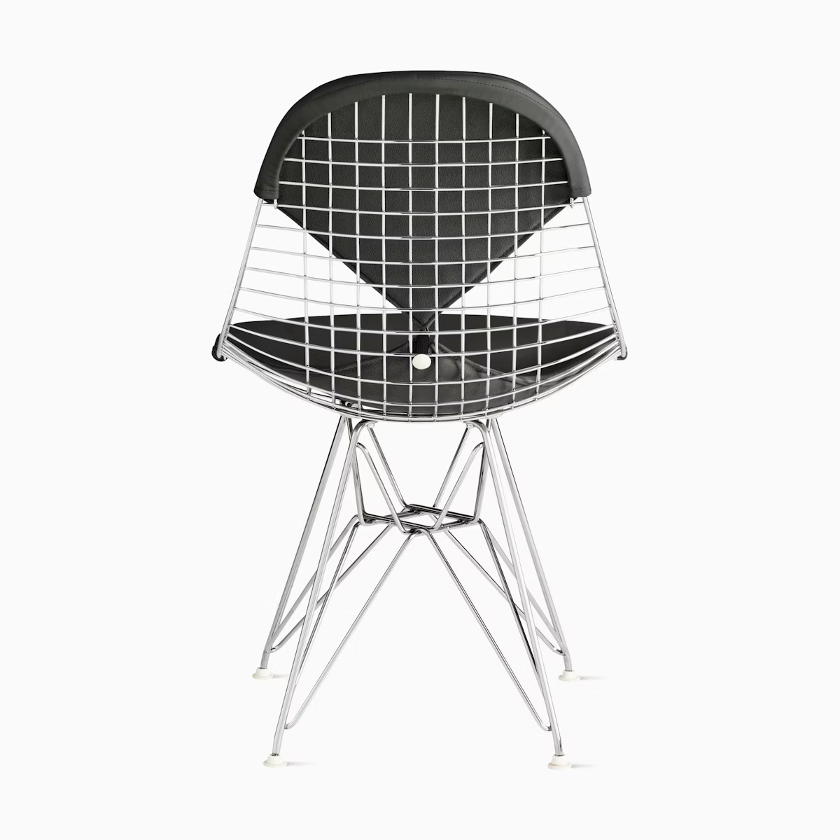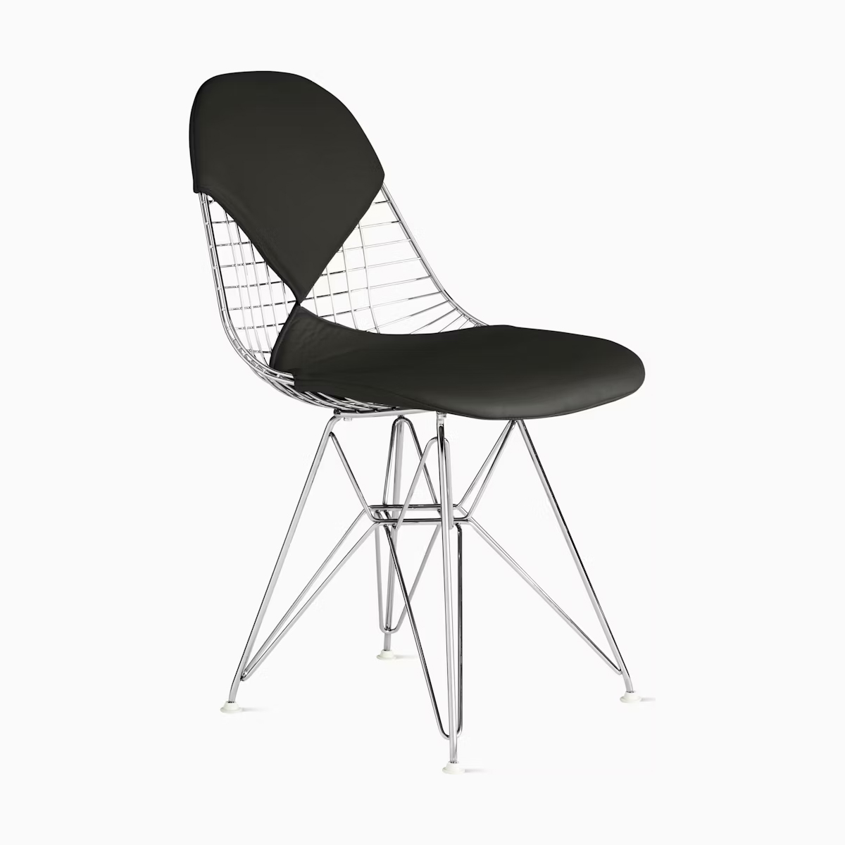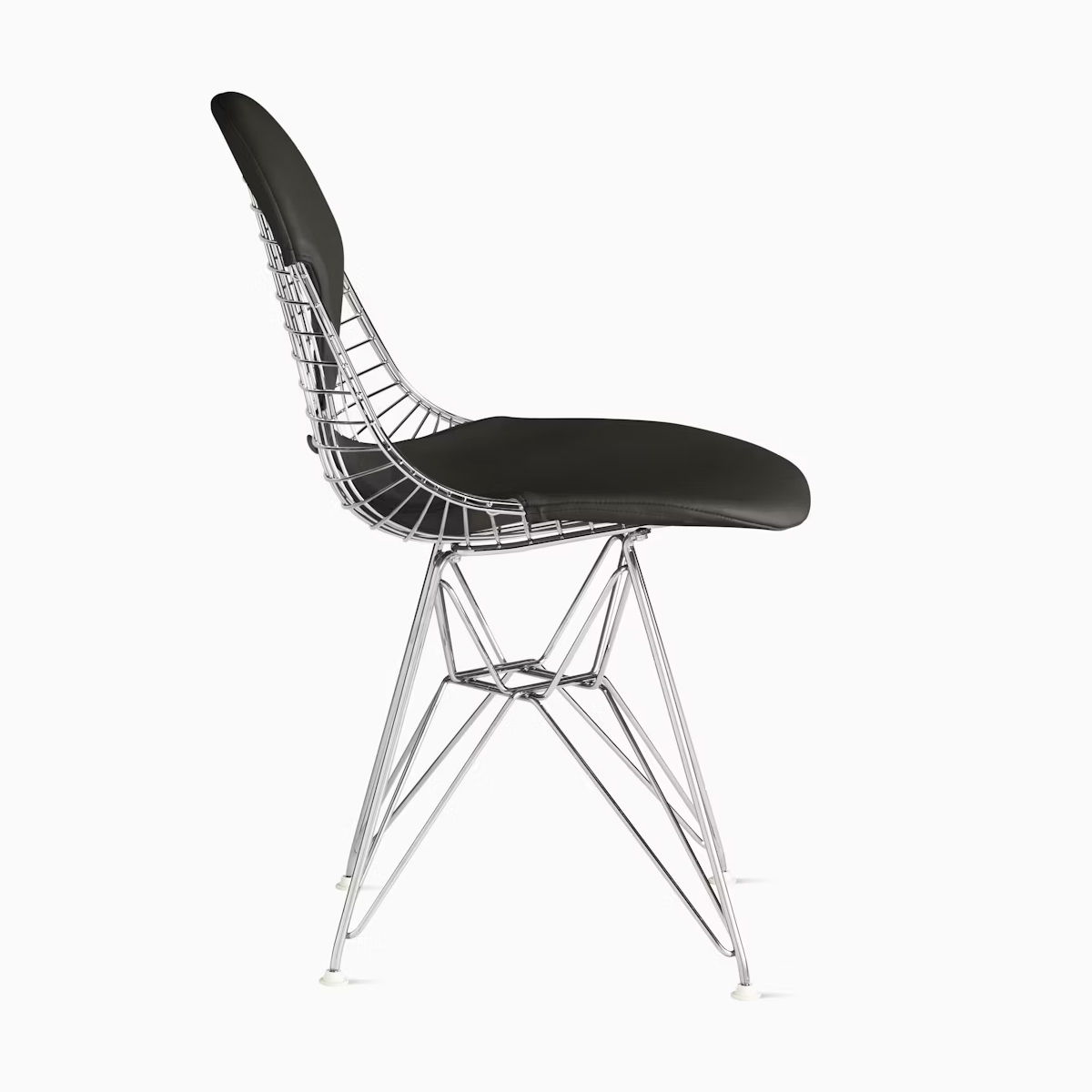 鐵線椅的輕盈輪廓由交錯編織的金屬線材構成,並置於 彎曲焊接鉻金屬底座(俗稱「艾菲爾鐵塔」椅架)上。椅子的有機曲線貼合身體線條,使其無論在居家或辦公空間都十分適合,此外,椅子可選配 一體成型皮革座墊 或標準鐵線座背。