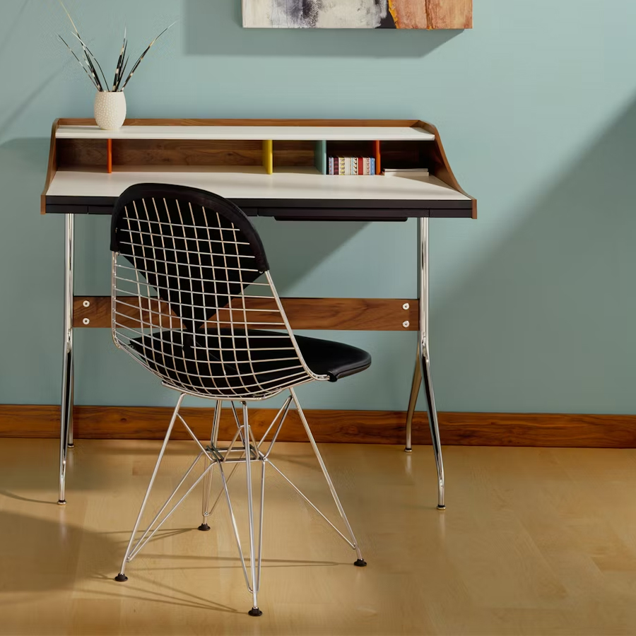 1951 年,Charles 和 Ray Eames 著手挑戰製作一款價格合理、品質優良、既輕巧又堅固的椅子,解答就是 Eames Wire Chair。這款鐵線椅具備雕塑般的造型、舒適度與實用性,一推出便立即受到歡迎,今日的版本仍忠於原始設計、材料與細節呈現。