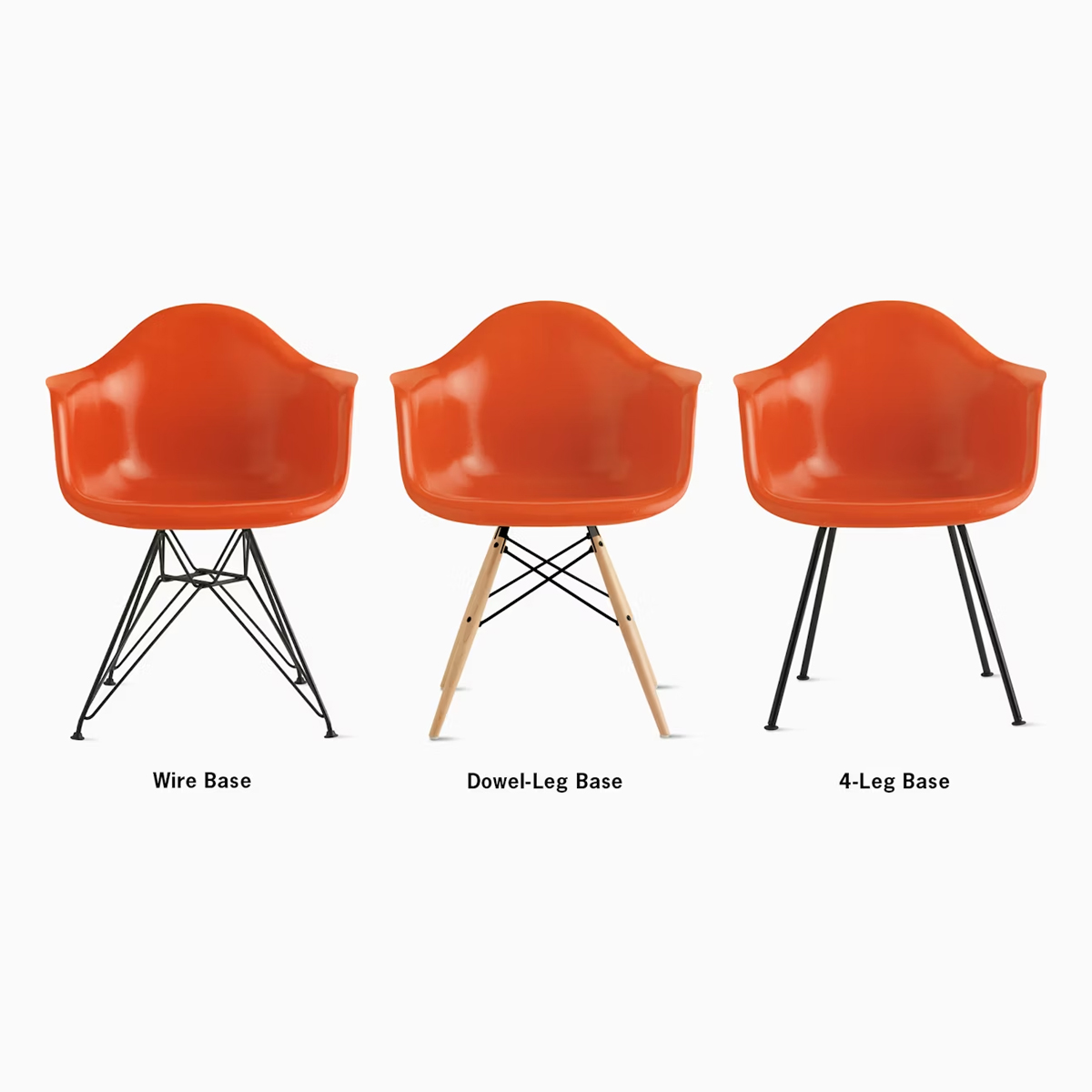 模壓塑膠椅提供靈活且舒適的座感,並可搭配多種椅腳款式,椅面採用環保、可回收的聚丙烯(polypropylene)製成,提供多種顏色選擇,顏色貫穿材質,即使長期使用依然鮮豔耐看。