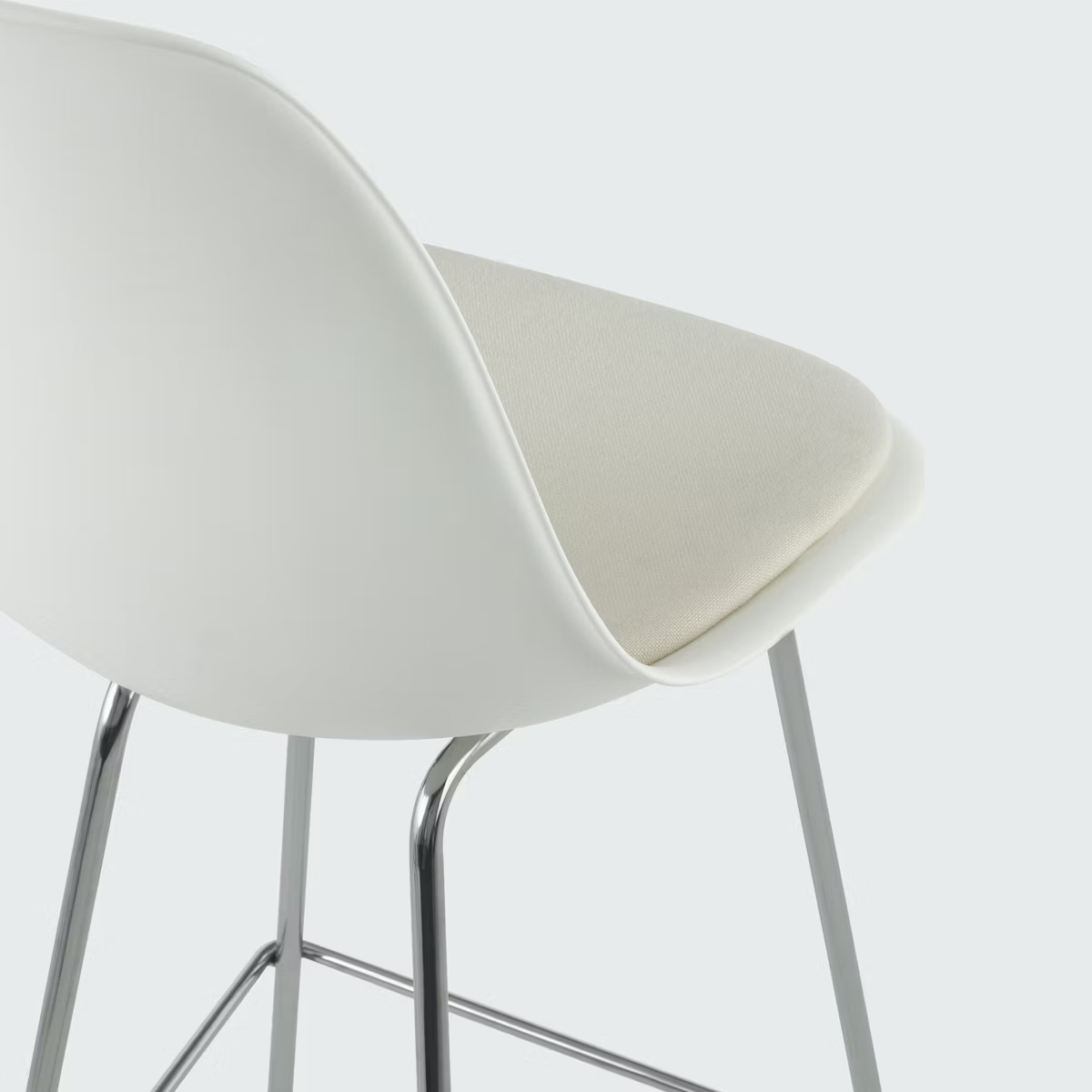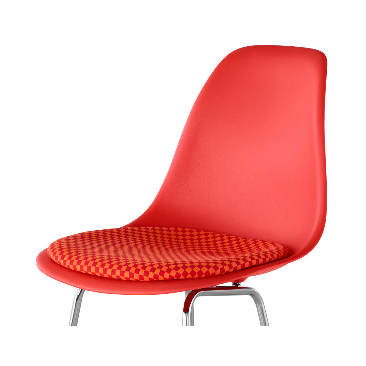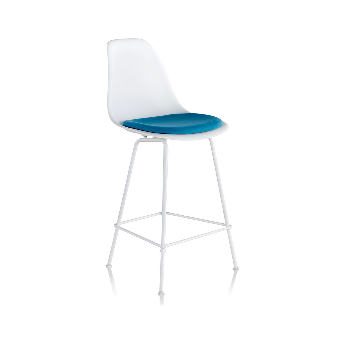 Eames 模壓塑膠凳採 可回收聚丙烯材質,座面與靠背為一體成型,邊緣採瀑布型設計,靠背具有彈性,除了豐富的塑膠椅殼顏色選擇外,Eames 模壓塑膠凳也提供布面或皮革座墊款式,座墊固定於 Eames 模壓椅殼上,多款座墊選擇滿足個性化需求。