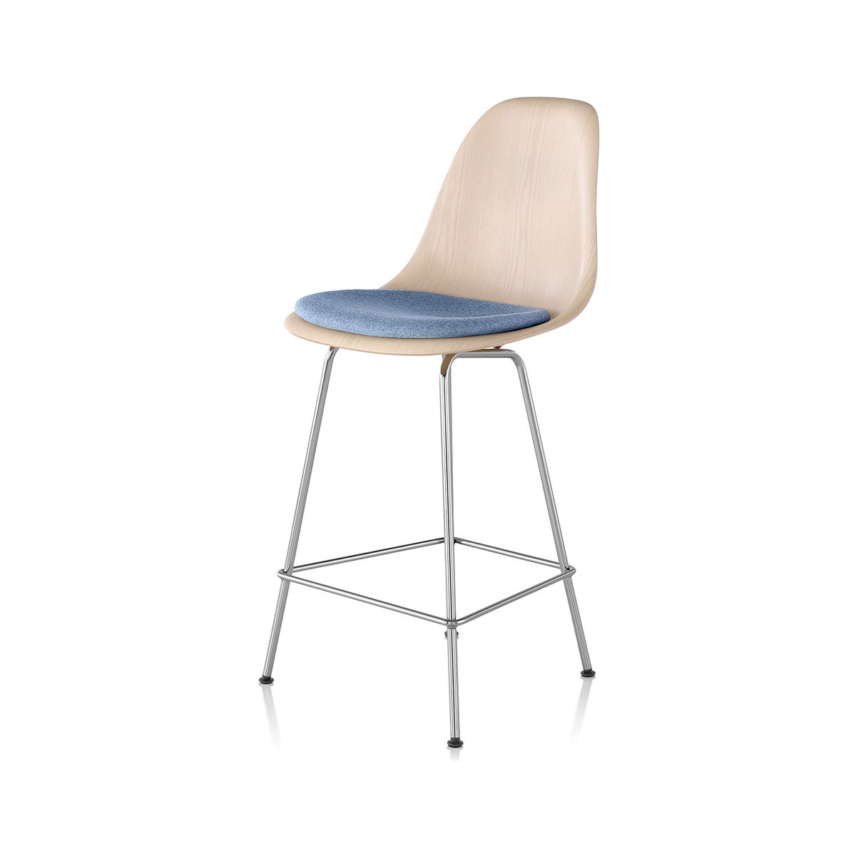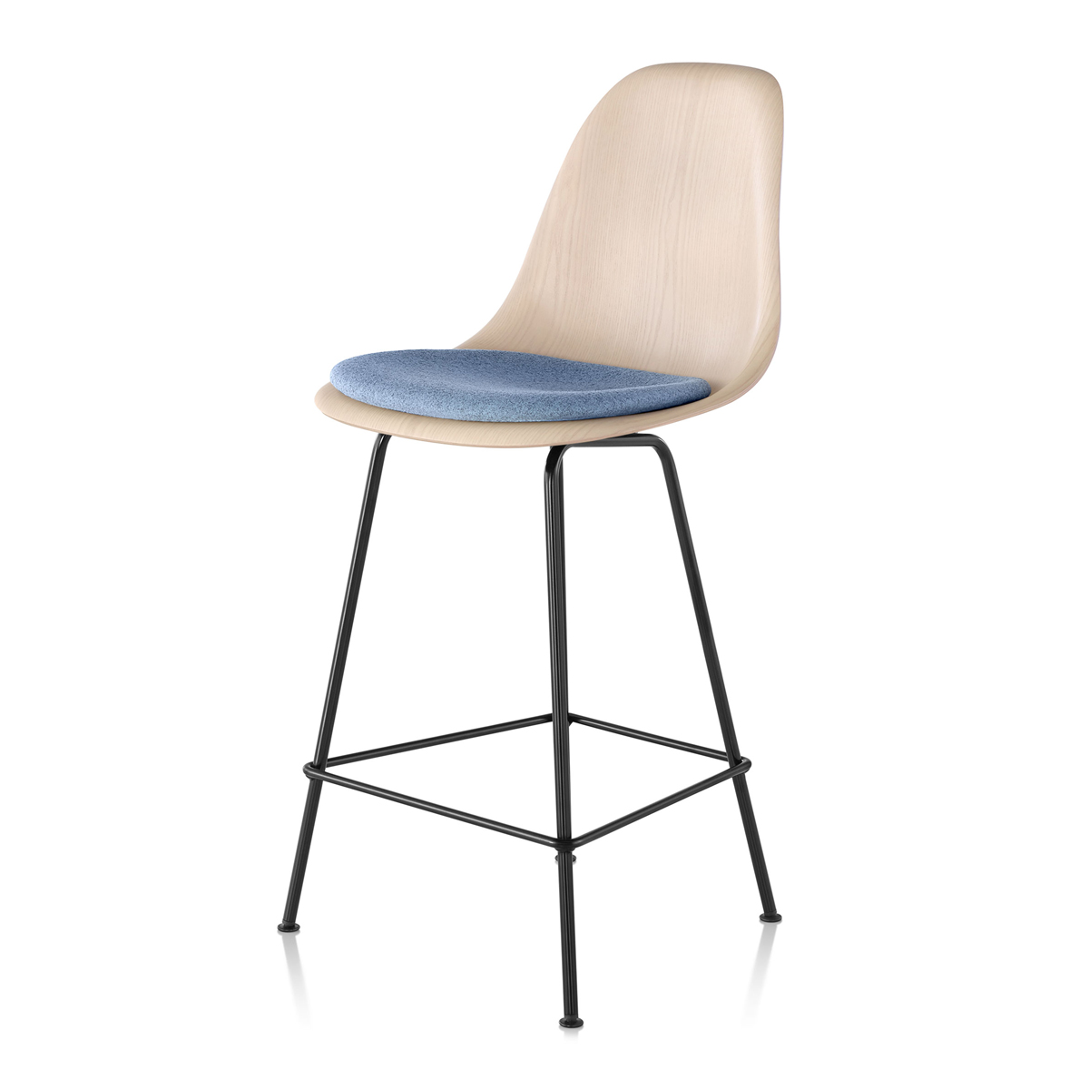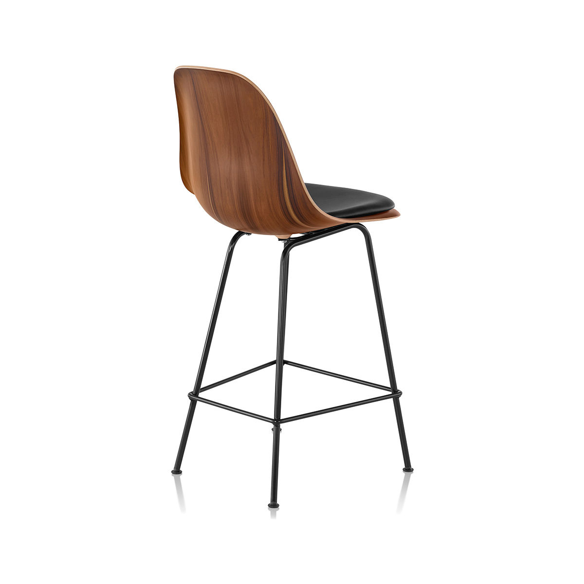 Eames 凳的經典造型,得益於使木貼面額外具柔韌性的製程,使其能成型為單片木殼的複雜曲線,這樣的設計為任何空間增添一抹風格。Eames 模壓木凳提供多種木皮材質選擇。四腳底座可選吧台或中島高度,並提供多種底座飾面。