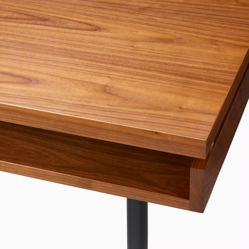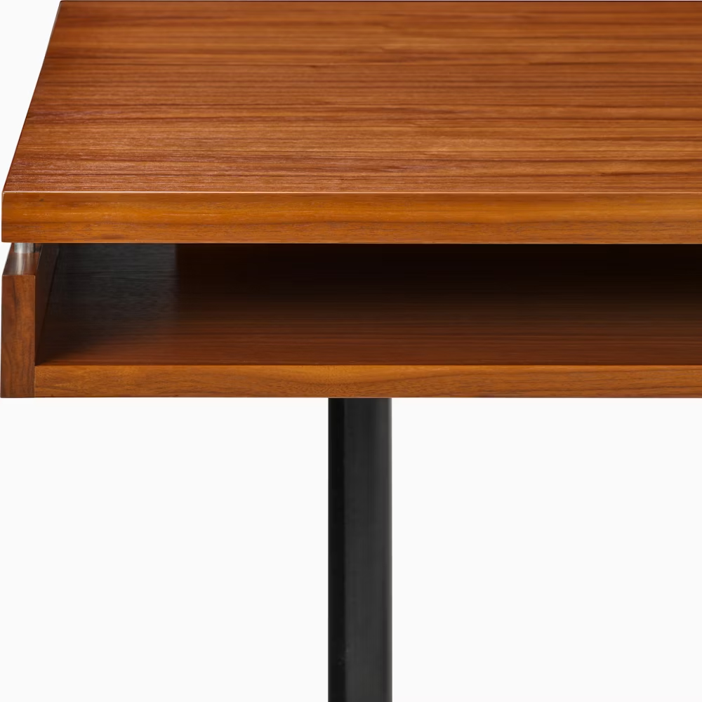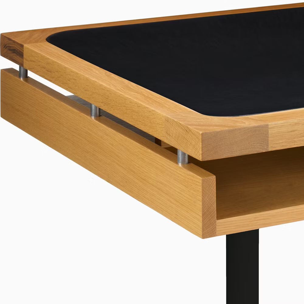 為了因應現代辦公室的需求,這款經典設計被成功地帶入了 21 世紀。書桌下方巧妙配置了儲物層板,在維持簡潔外觀的同時,也提供了實用的收納機能。這款源自限量客製化版本的作品,透過高品質的天然白橡木或胡桃木飾面,將 Herman Miller 傳奇般的工藝細節,完整呈現在您的辦公空間中。