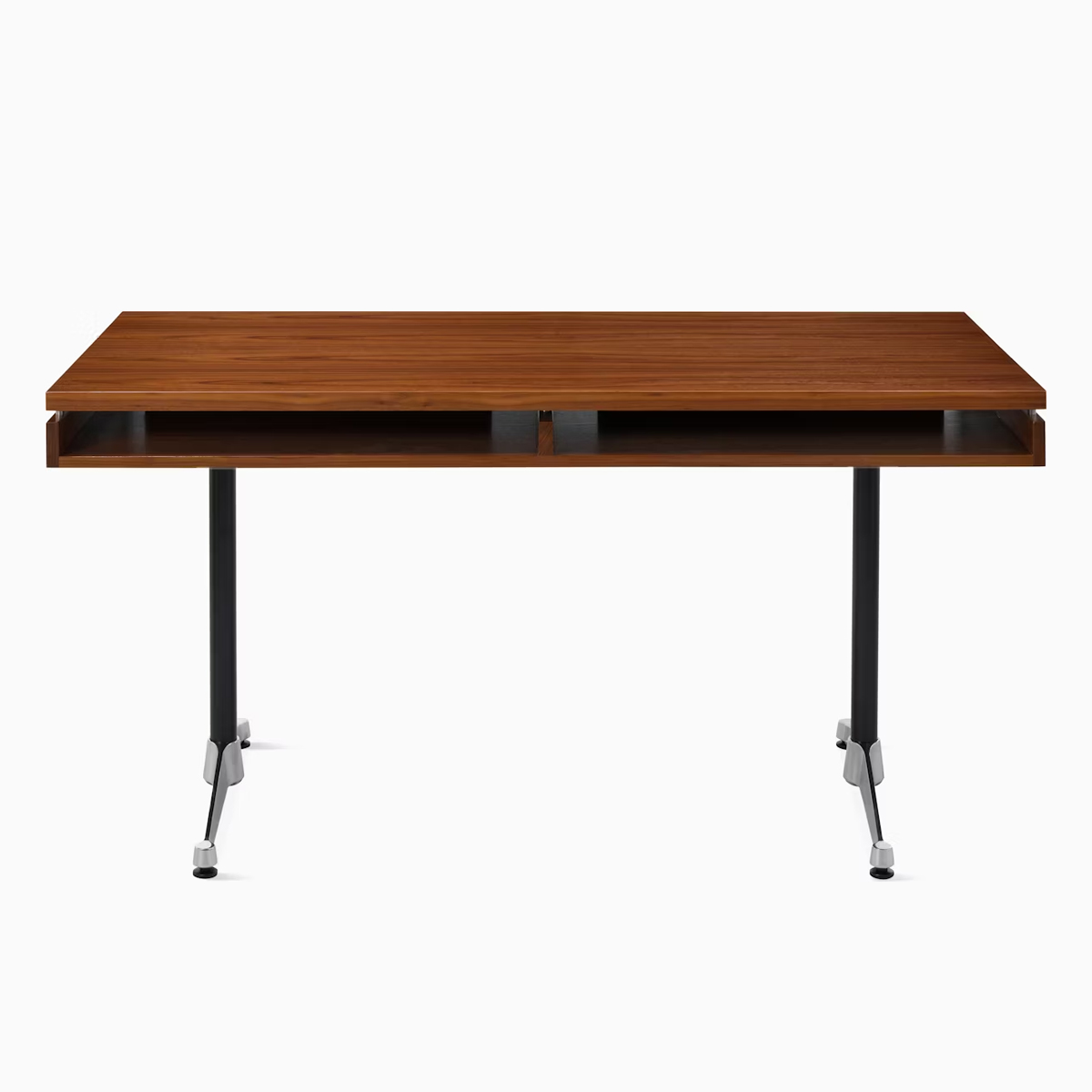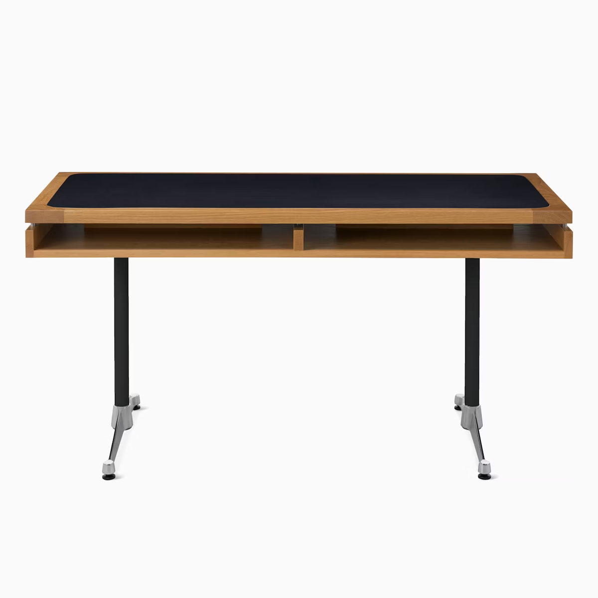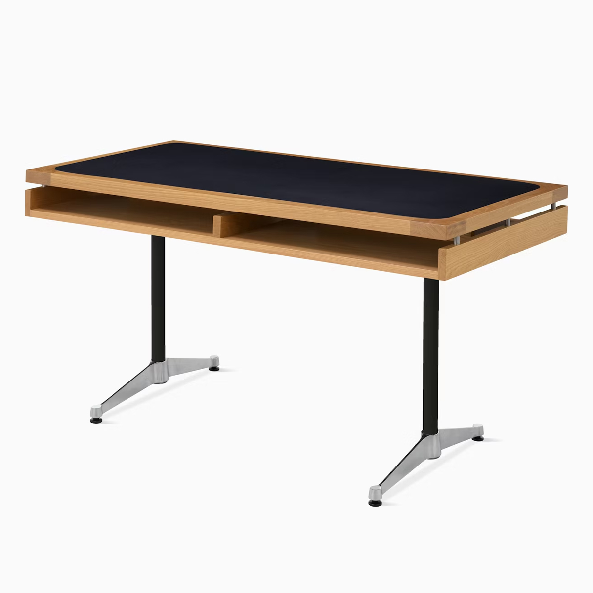 為了因應現代辦公室的需求,這款經典設計被成功地帶入了 21 世紀。書桌下方巧妙配置了儲物層板,在維持簡潔外觀的同時,也提供了實用的收納機能。這款源自限量客製化版本的作品,透過高品質的天然白橡木或胡桃木飾面,將 Herman Miller 傳奇般的工藝細節,完整呈現在您的辦公空間中。