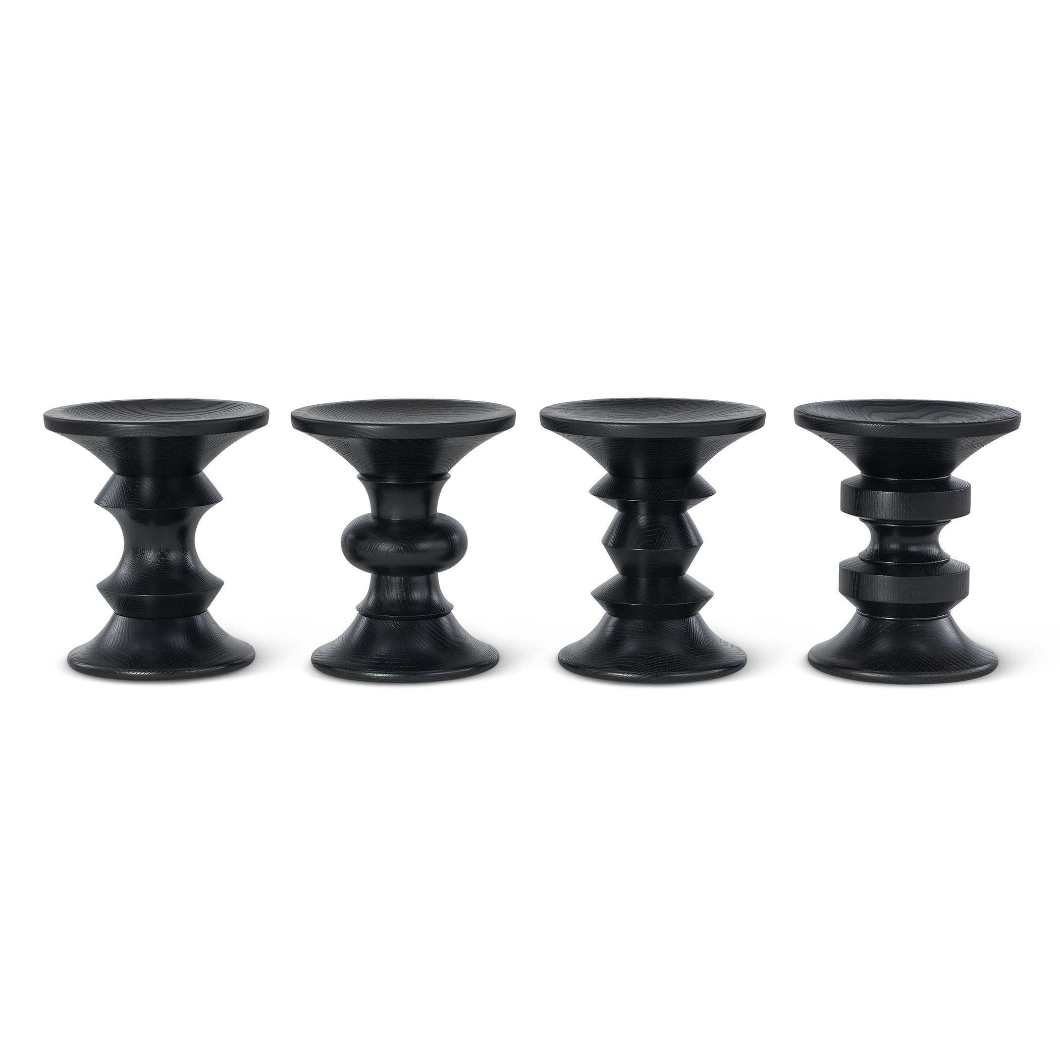 Eames 凳款提供 實心胡桃木、白橡木或烏木三種材質選擇,四種具雕塑感的造型輪廓,凳面與底部較小的接觸面皆為內凹設計,展現細膩而獨到的工藝與造型美感。