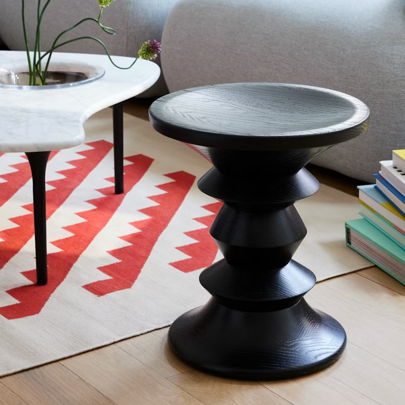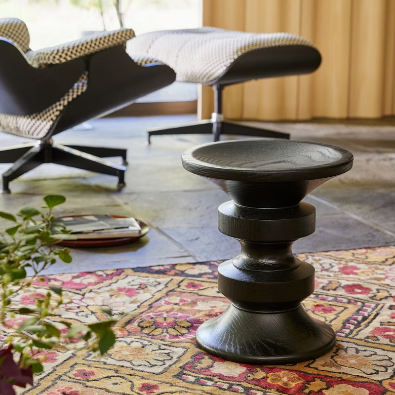 這款 Eames 胡桃木凳成為她最喜愛的座椅之一,也被大量擺放在 Charles 與 Ray Eames 位於Pacific Palisades的家中。以實心胡桃木製成,這些凳子可靈活運用於各種空間,展現出高度的實用性與美感。除了作為座椅,也能當作矮桌、展示平台,或單純作為值得欣賞的藝術物件。