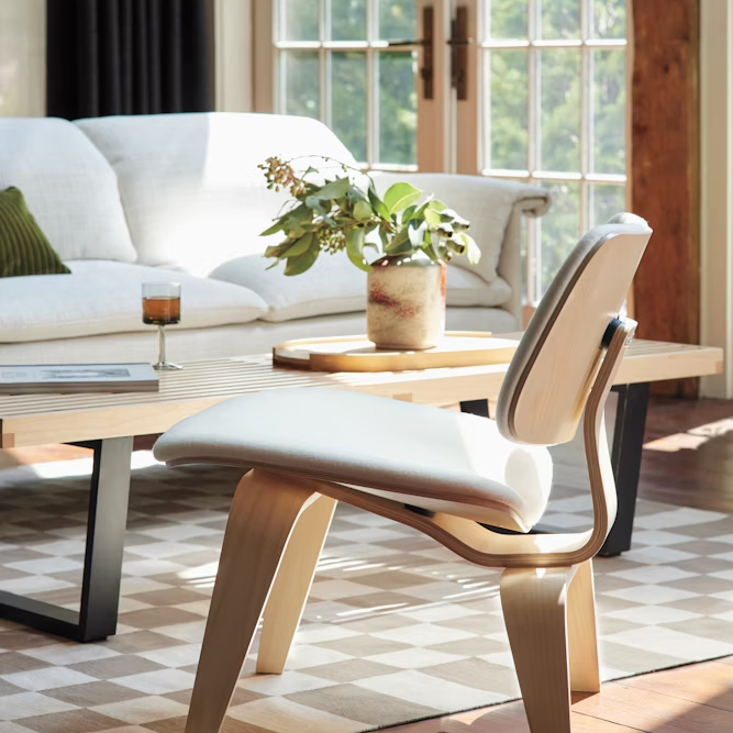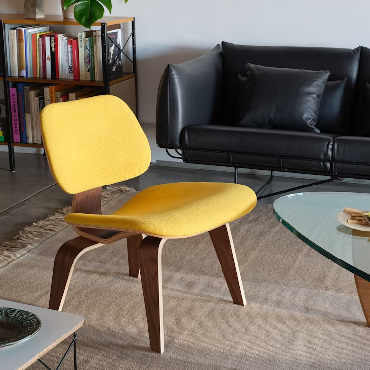 由 Charles 與 Ray Eames 於 1946 年與 Herman Miller 建立長期合作關係,首創大膽原創的餐椅與休閒椅設計符合人體工學,流線雕塑的造型以薄片輕質木皮經過彎曲模壓而成,搭配天然橡膠避震墊以吸收動作震動。