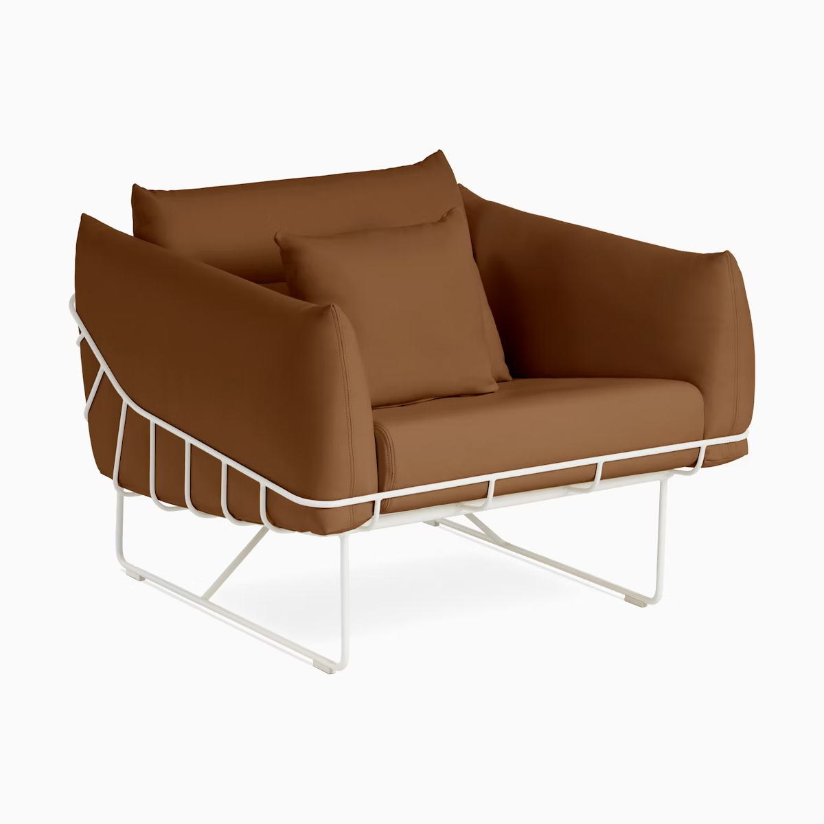 在 Wireframe Chair 上,輕盈的坐墊被鋼線框架包覆,將柔軟與厚實感與堅固耐用性完美結合。