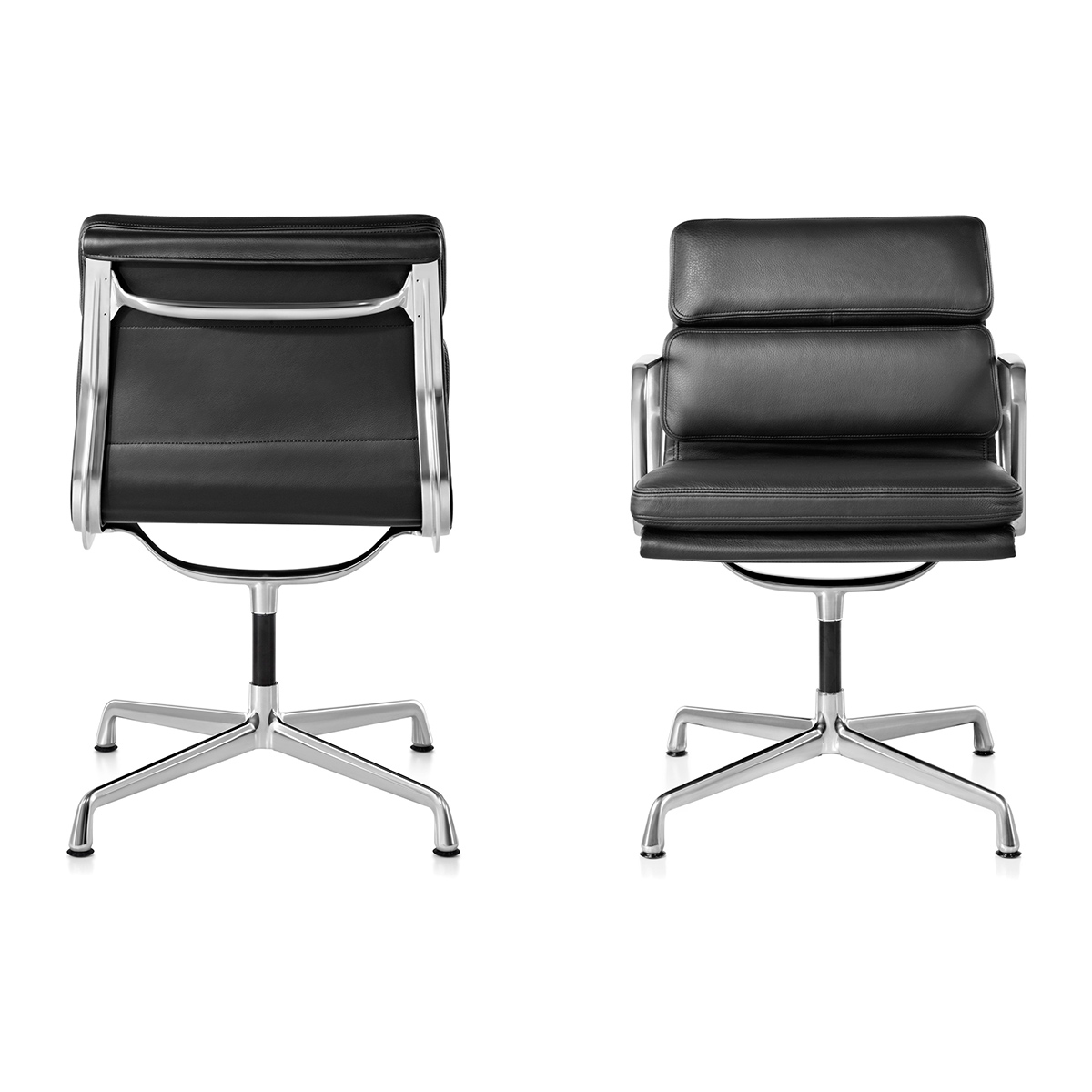 作為 1958 年為 Irwin Miller 住宅設計的 Aluminum Group 鋁製椅系列的延伸,Soft Pad Group 延續了先前的結構設計,並在座面與椅背上增加了軟墊。這些包覆著皮革或織物的軟墊,將 Aluminum Group 原本俐落簡約的特質,轉化為適用於居家與辦公空間的奢華版本。