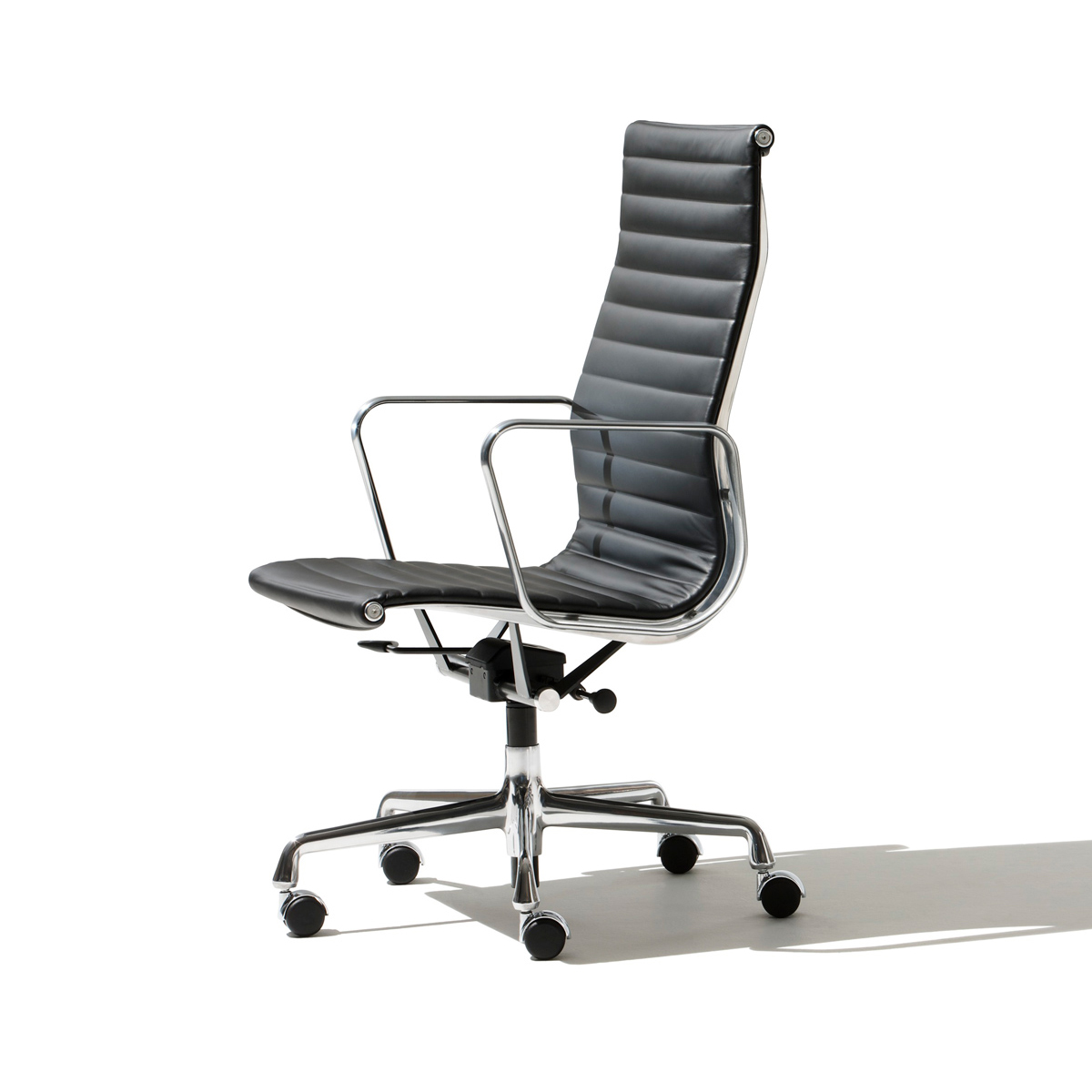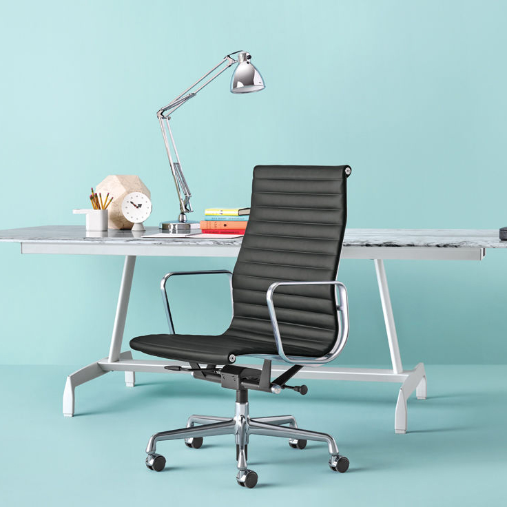其中的行政高背椅 (Executive Chair) 具備高背與扶手設計,採用鋁製框架與懸吊式飾面。底座為五爪星形設計並配備滑輪,具備傾仰旋轉機構與座高調整功能(手動或氣壓式)。全新的氣壓式調整功能讓操作更為輕鬆,並在調整上限額外增加了 2 英吋的高度空間;而新款的傾仰鎖定功能則可將座面角度固定在水平中立位置。