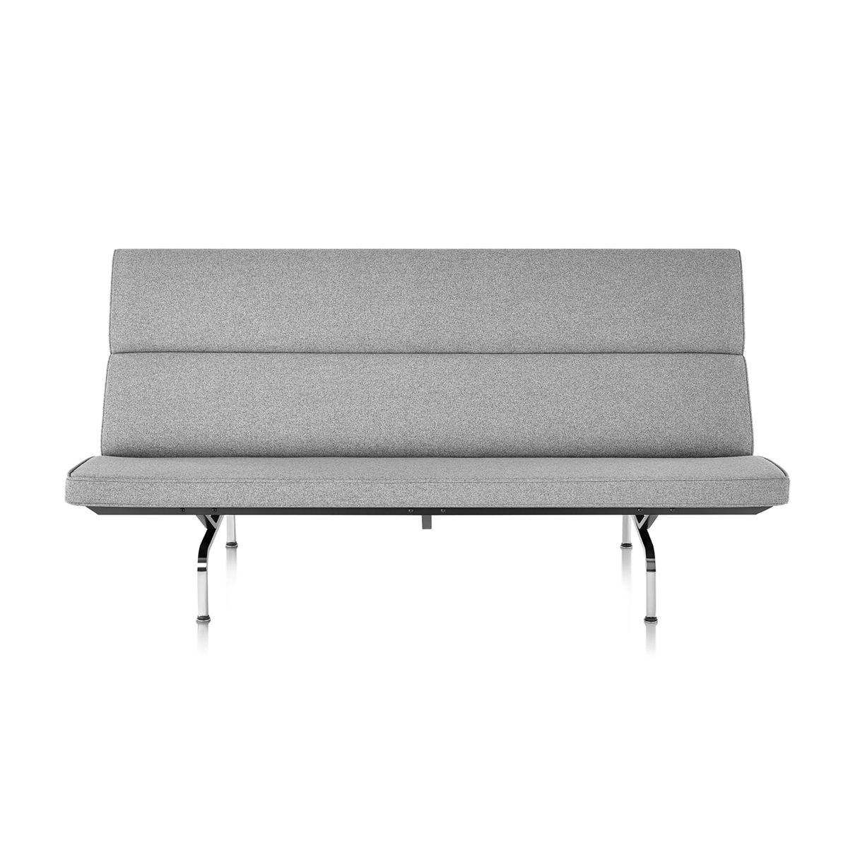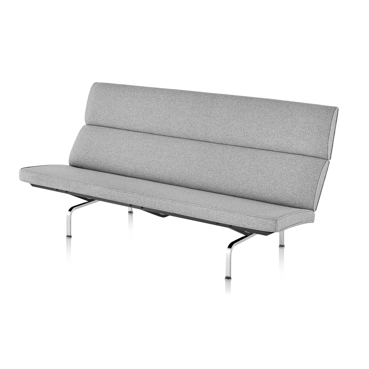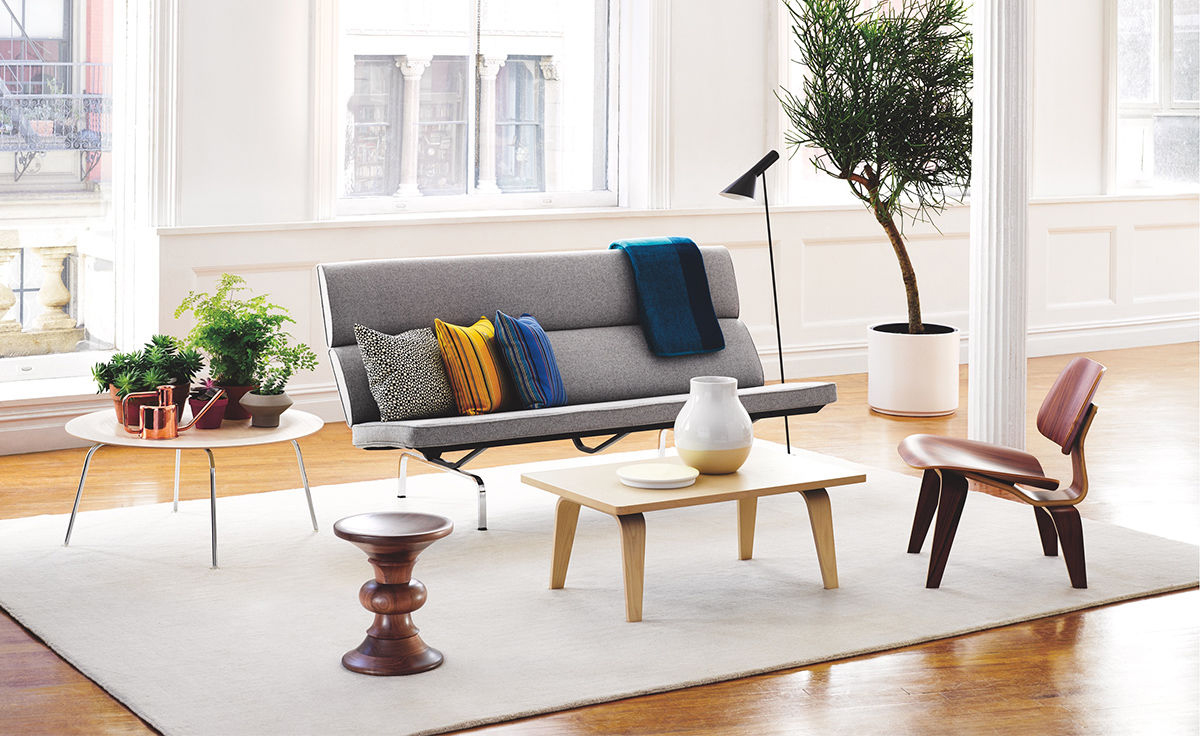 Eames Sofa Compact 以俐落的輪廓與輕盈比例著稱,其設計源自 Charles 與 Ray Eames 為加州 Pacific Palisades 自宅客廳打造的內建沙發。了解這個背景後,「Compact」這個名稱對於一張超過 6 英尺長、能從肩部到膝蓋提供舒適支撐的沙發,也就不再令人好奇。