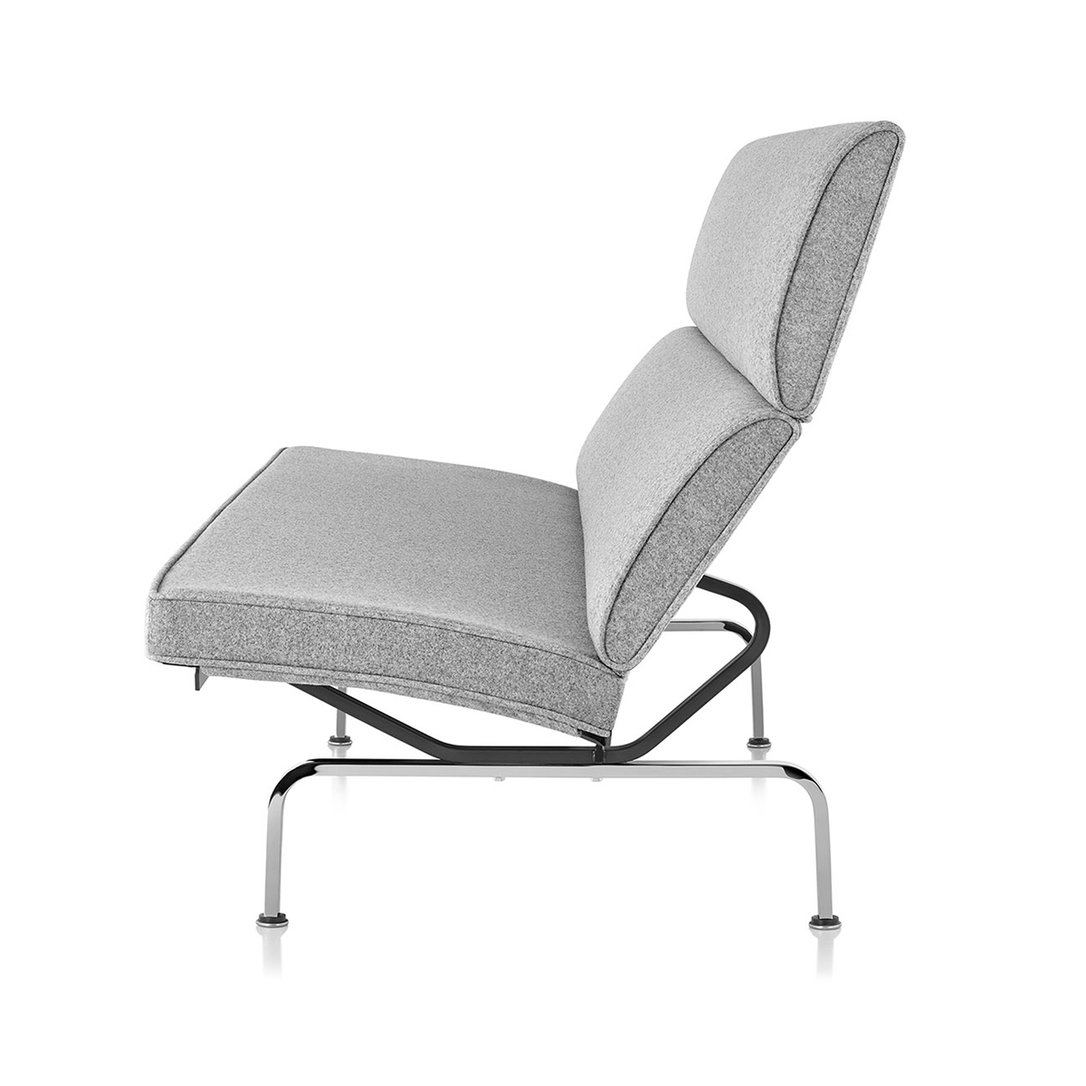 這款輕量比例的沙發雖小巧,卻提供了長型、低矮、厚重沙發般的舒適感。兩片水準泡棉坐墊構成舒適的高靠背,黑色琺瑯鋼框與鍍鉻鋼管椅腳提供穩固支撐。它適合體積較大、傳統沙發無法放置的空間,非常適合辦公室套房、休息室或居家小型空間。
