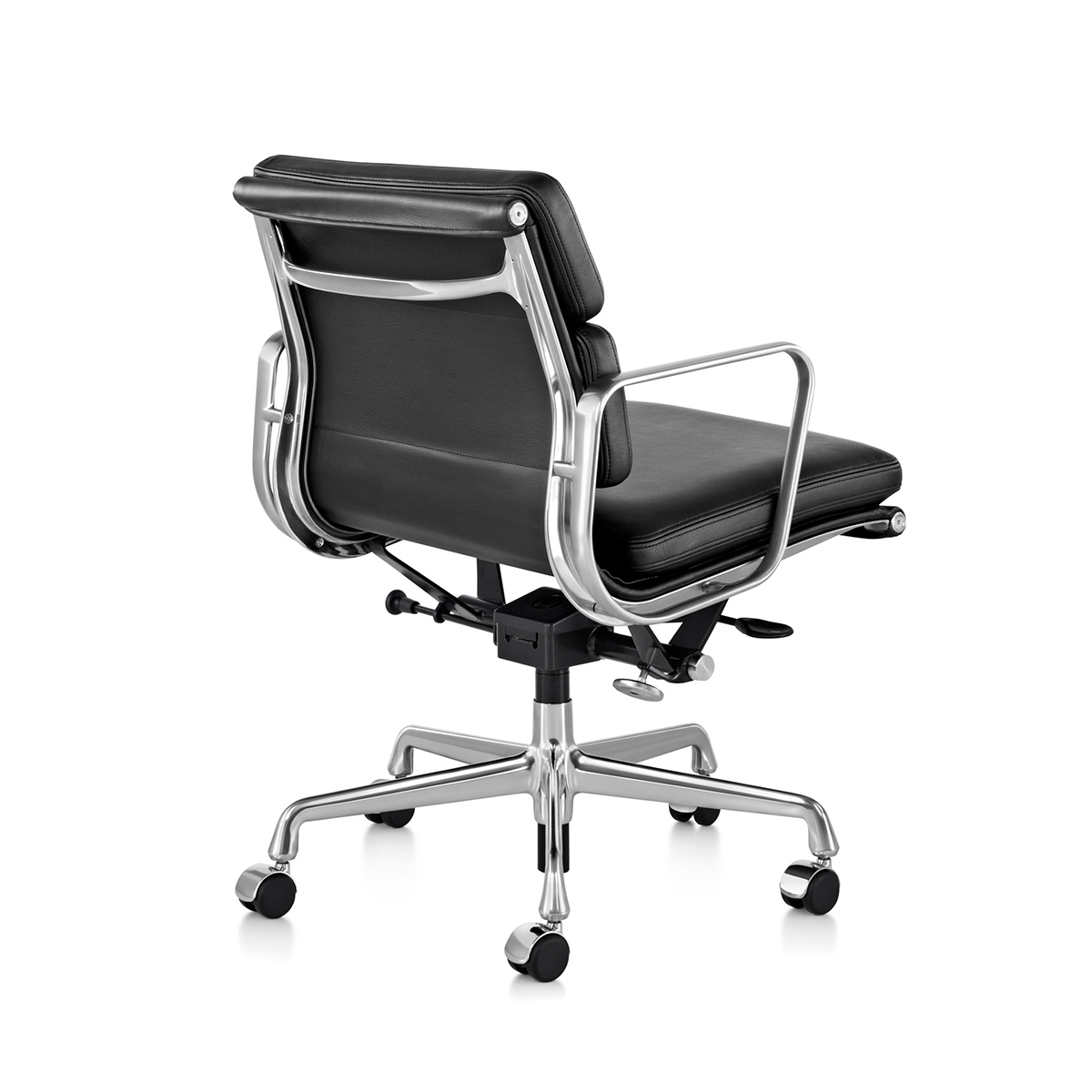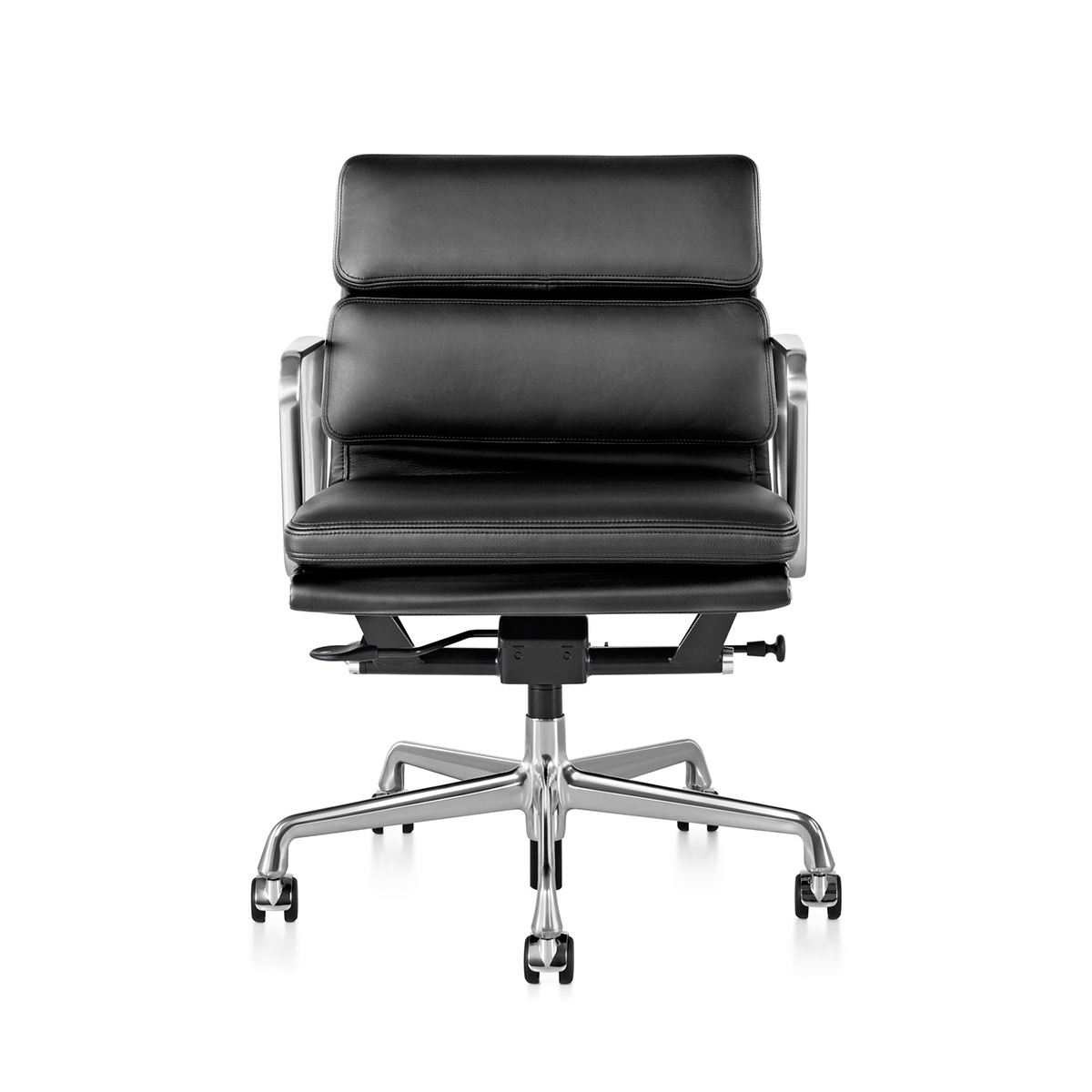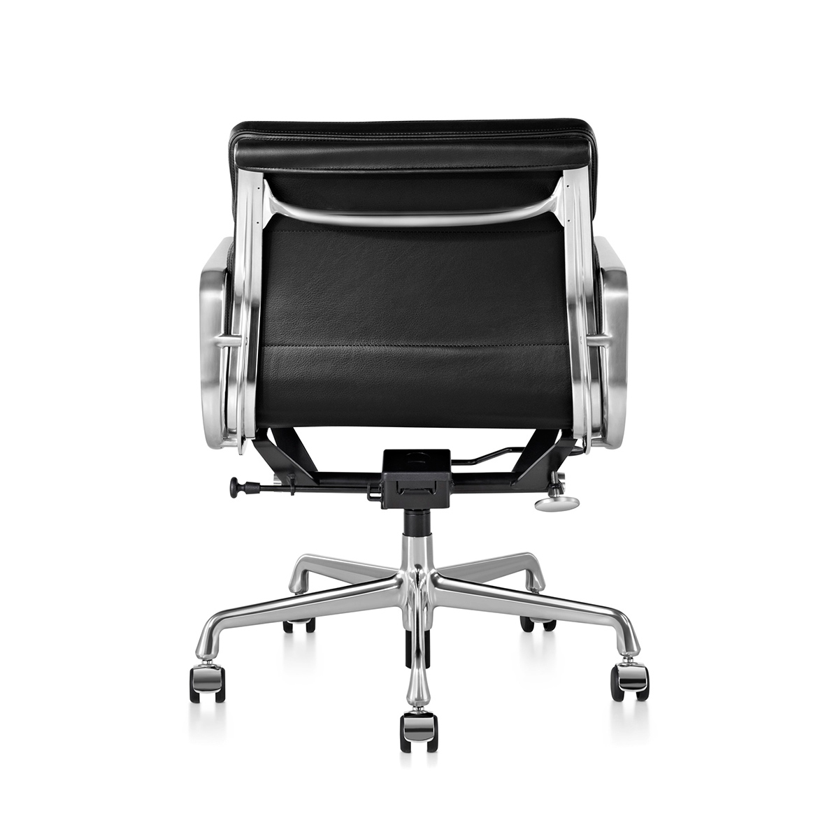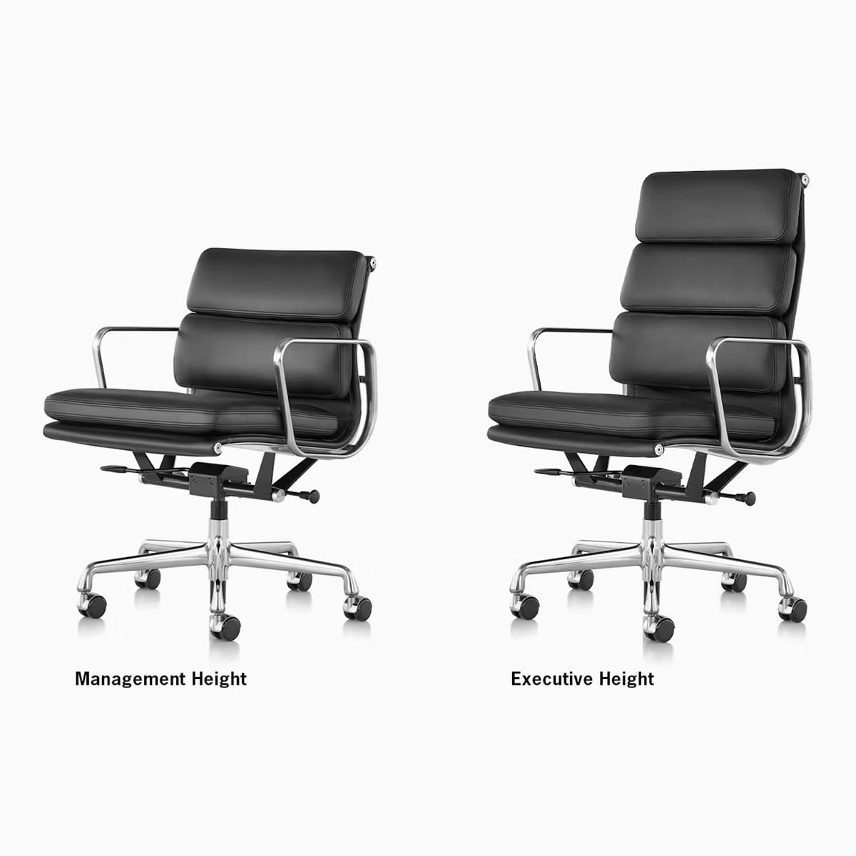 這款主管椅 (Management Chair) 採低背附扶手設計,由輕量鋁製框架搭配 2 英吋厚的包覆式泡棉軟墊組成,底座採五爪星形設計,具備傾仰旋轉機構與座高調整功能(提供手動或氣壓式選擇)。全新的氣壓式調整功能讓操作更為輕鬆,並在調整上限額外增加了 2 英吋的高度空間;而新款的傾仰鎖定功能則可將座面角度固定在水平中立位置。