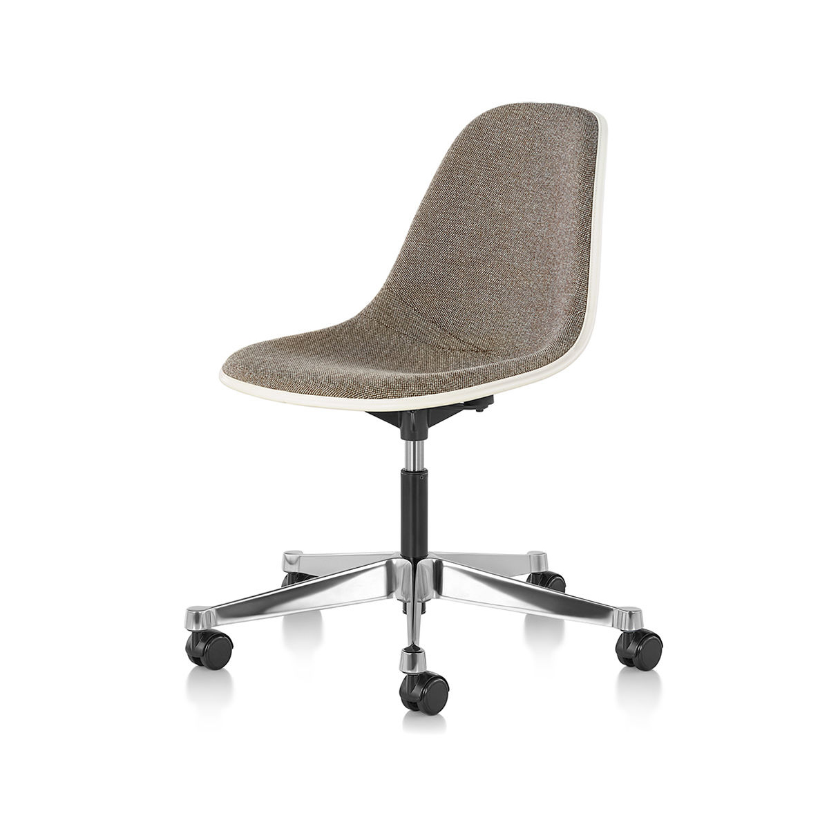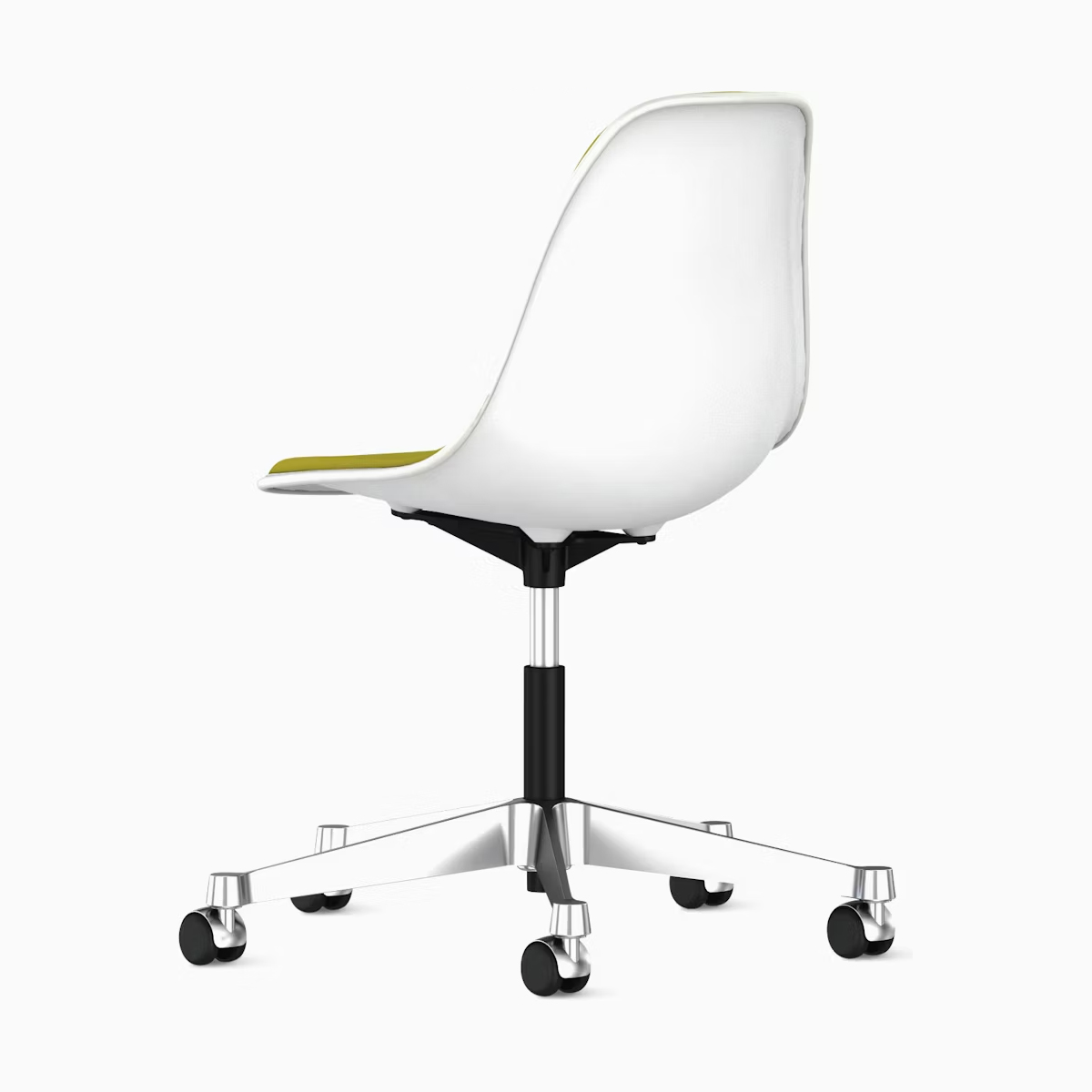 Eames 工作椅 (Task Chair) 是現有 Eames 椅殼系列的延伸,在五爪星形底座上提供精選的椅殼與軟墊組合,扶手椅殼為一體成型的模製塑膠或玻璃纖維,具備瀑布般的圓潤邊緣並提供軟墊選項。椅殼顏色與軟墊選擇與現有的 Eames 模製塑膠及玻璃纖維扶手椅系列同步,織物或皮革軟墊僅限室內使用。