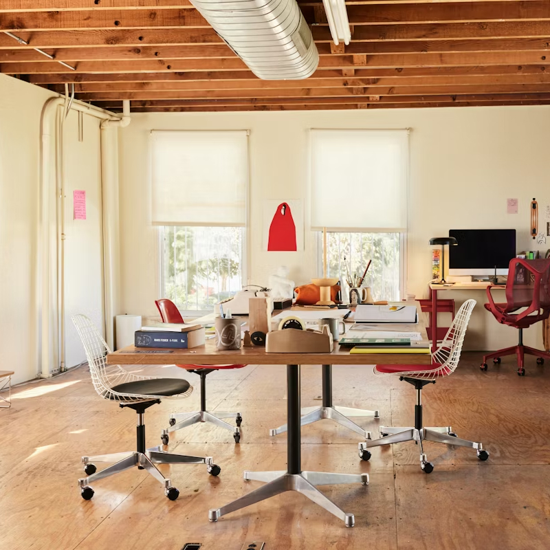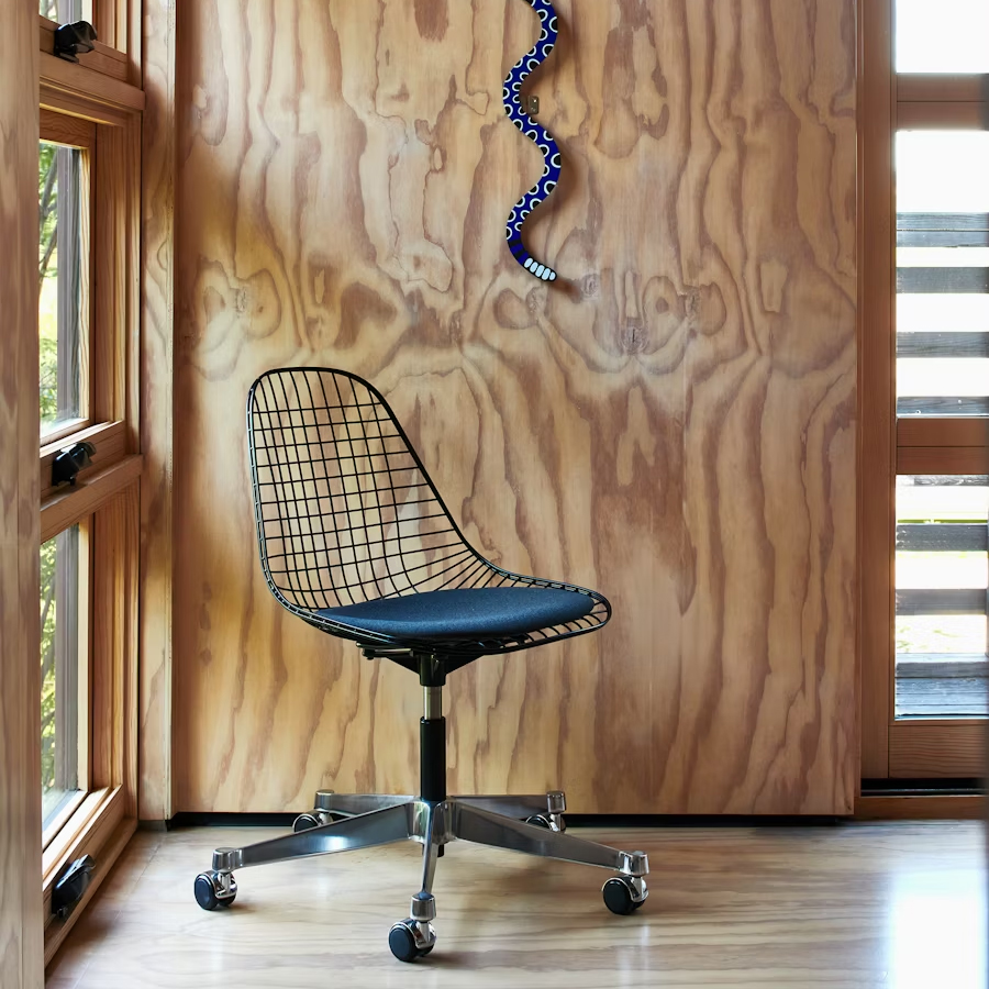 1951 年,Charles 和 Ray Eames 著手挑戰製作一款價格合理、品質優良、既輕巧又堅固的椅子,解答就是 Eames Wire Chair。這款鐵線椅具備雕塑般的造型、舒適度與實用性,一推出便立即受到歡迎,今日的版本仍忠於原始設計、材料與細節呈現。