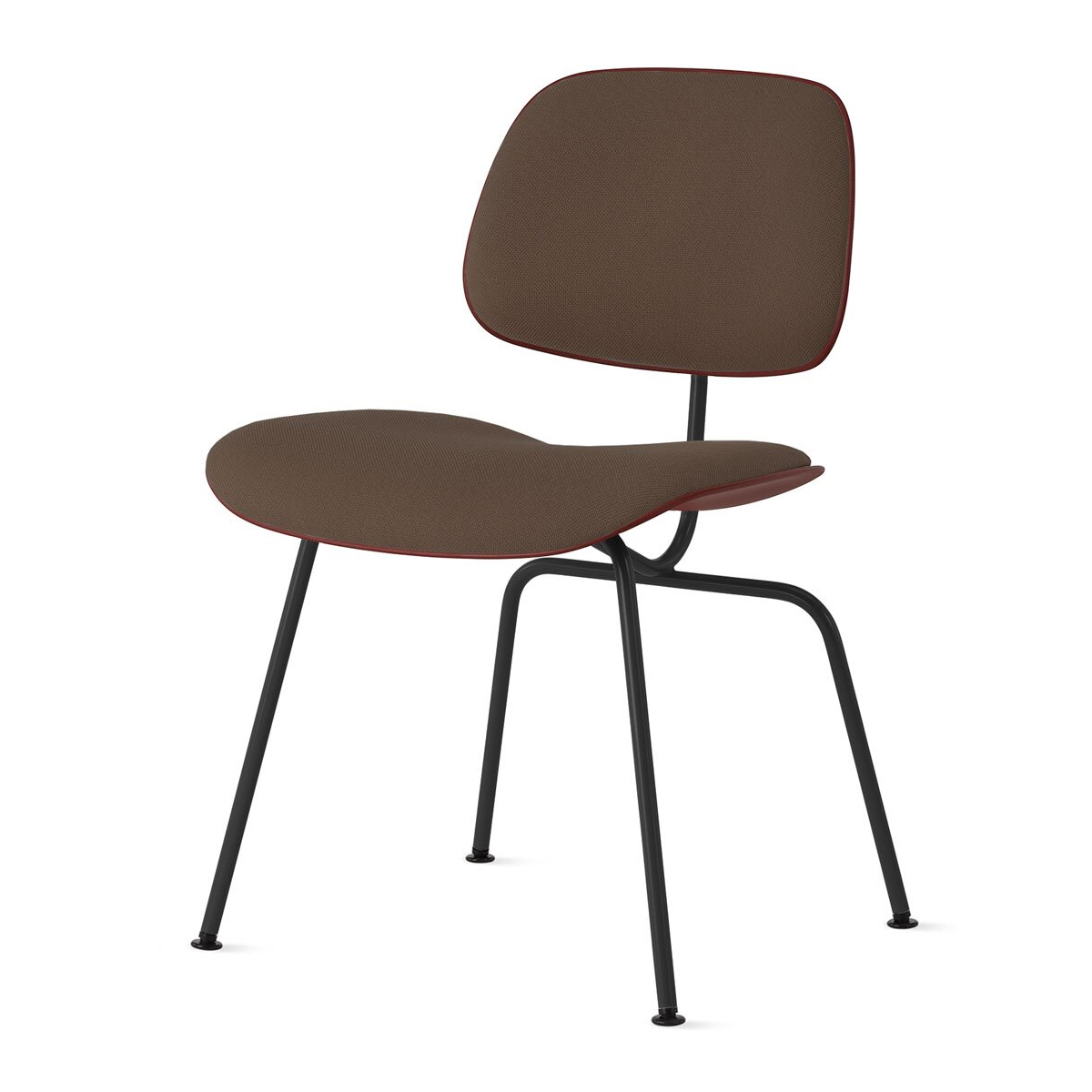 設計師 Charles 與 Ray Eames 夫婦與 Herman Miller 傳奇且長久的合作關係始於 1946 年,當時他們推出了大膽原創的模製積層材(Molded Plywood)餐椅與休閒椅,為了舒適契合人體曲線,模製積層材椅的雕塑外型是採用輕薄的飾面板,經由溫和模塑成型為曲線形狀,並搭配天然橡膠避震墊以吸收受力。