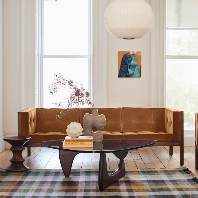 Nelson Cube Lounge Chair 由 George Nelson 於 1968 年為 Herman Miller 設計,是硬與軟的對比研究之作。Nelson 將足以穩定空間的建築感實木框架,與柔軟的絨面坐墊巧妙結合,既穩重又舒適,邀請人們放鬆身心。