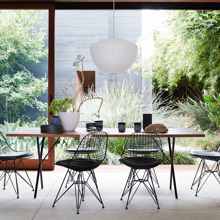 多款不同球形造型的 Nelson Bubble Lamps 由 George Nelson 於 1952 年設計,為室內空間增添柔和光感與輕盈氣息,燈具以堅固輕量的鋼架製成,無論是吊燈、落地燈、桌燈或壁燈版本,都展現優雅漂浮感。
