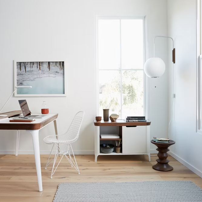 多款不同球形造型的 Nelson Bubble Lamps 由 George Nelson 於 1952 年設計,為室內空間增添柔和光感與輕盈氣息,燈具以堅固輕量的鋼架製成,無論是吊燈、落地燈、桌燈或壁燈版本,都展現優雅漂浮感。