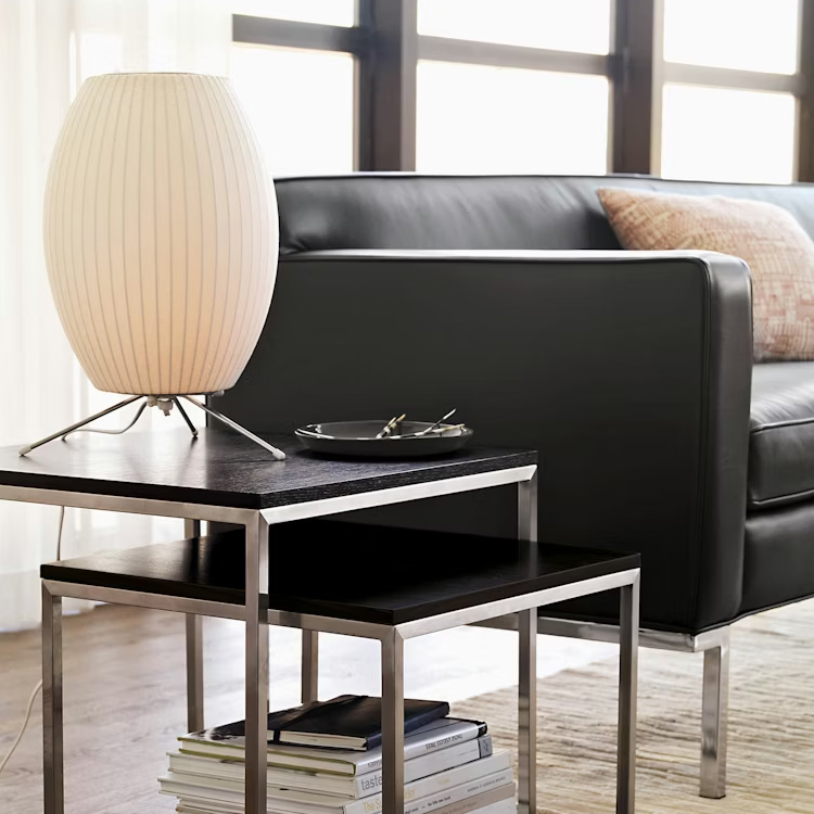 多款不同球形造型的 Nelson Bubble Lamps 由 George Nelson 於 1952 年設計,為室內空間增添柔和光感與輕盈氣息,燈具以堅固輕量的鋼架製成,無論是吊燈、落地燈、桌燈或壁燈版本,都展現優雅漂浮感。