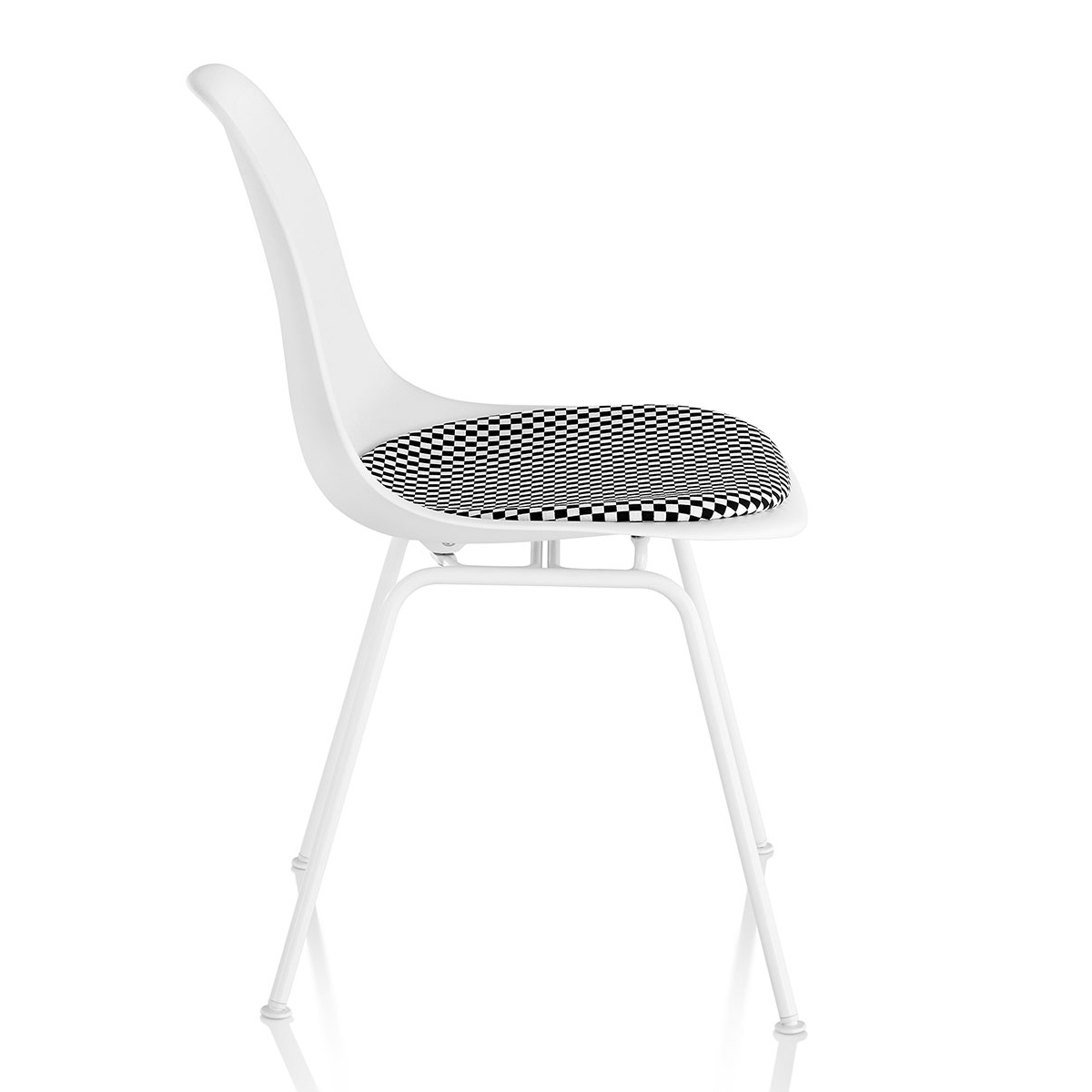 Eames 的塑膠與木質單椅可依需求選擇不同椅架,包括金屬線腳、實木斜腳以及四腳椅架,同時提供多種精緻布面的客製化坐墊選項,帶來更多搭配可能。